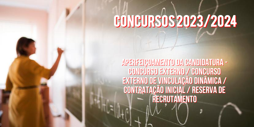 A Associação dos Trabalhadores da Educação informa que relativamente aos concursos 2023/2024 já se encontra disponível a aplicação eletrónica, entre o dia 26 de maio e as 18:00 horas de 30 de maio de 2023 (hora de Portugal continental) para efetuar o Aperfeiçoamento da candidatura ao Concurso Externo/ Concurso Externo de Vinculação Dinâmica /Contratação Inicial e Reserva de Recrutamento, destinados a Educadores de Infância e a Professores dos Ensinos Básico e Secundário.