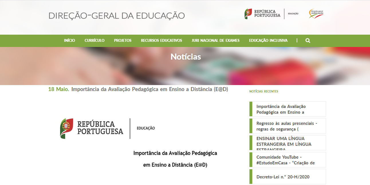 A Direção-Geral da Educação publicou e divulgou um roteiro com os Princípios Orientadores para uma Avaliação Pedagógica em Ensino a Distância (E@D), onde se enumeram alguns princípios e orientações para a avaliação e dão-se vários exemplos de instrumentos e técnicas que funcionam a distância.