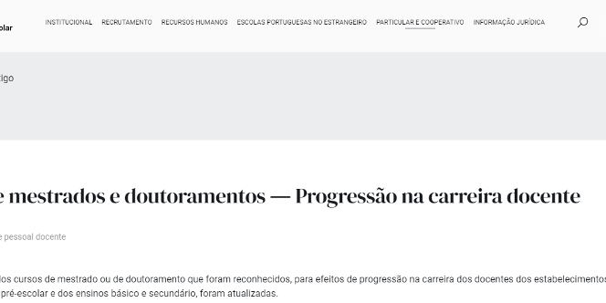 As listas dos cursos de mestrado ou de doutoramento que foram reconhecidos, para efeitos de progressão na carreira dos docentes dos estabelecimentos públicos da educação pré-escolar e dos ensinos básico e secundário, foram atualizadas.